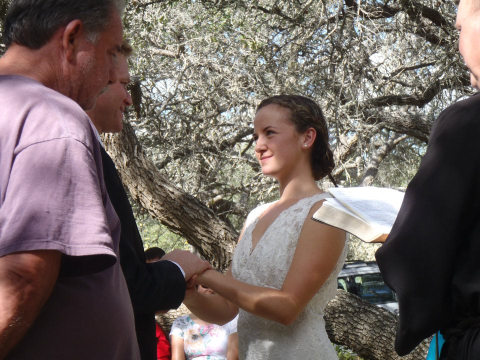 Dr. Yandell, Kayla’s mom, who has always been there for her, walked Kayla down the aisle (across the lawn). She placed Kayla’s hand in mine and said, “I’m turning her over to you, so take good care of her,” and I will. Later, Dr. Yandell said there was a silent clause that she could take her back anytime, but I don’t think she can legally do that.