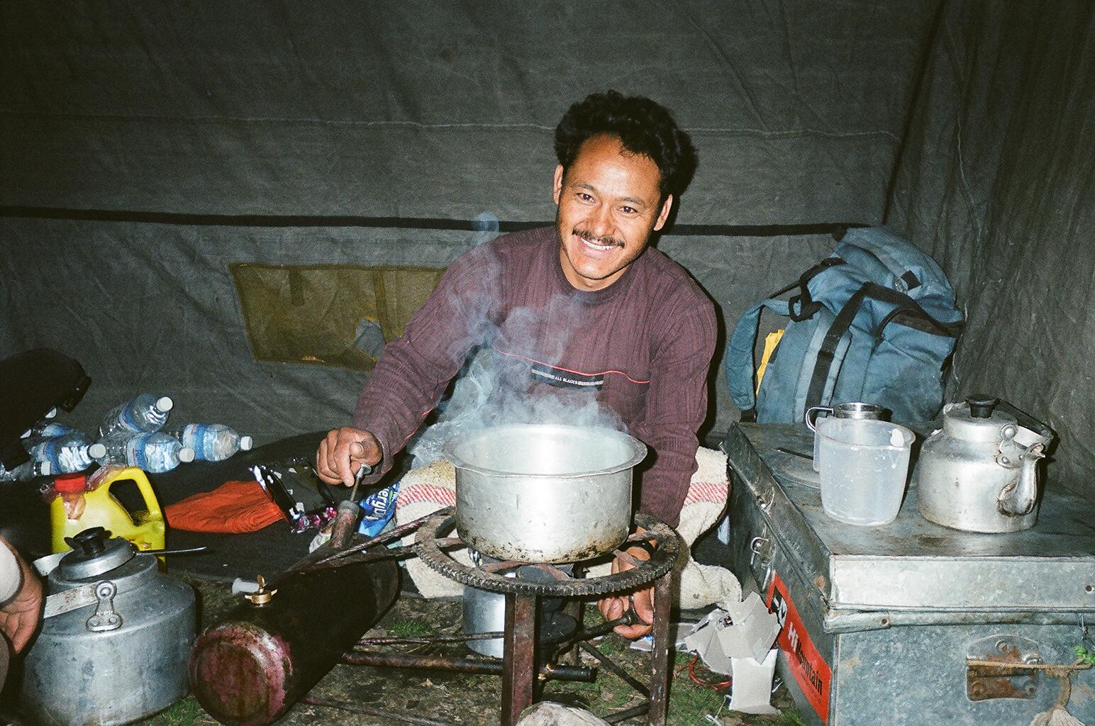 After climbing all day in the wind and storm and sun, clinging to the footholds of some perilous cliff-face, shuffling awkwardly along a narrow path at the edge of an abyss, struggling to the top of a vertical rise only to find yet another ragged peak looming above, straining every muscle of man and horse over rocky impediments of the thrilling landscape, standing awestruck at the views from the tallest ladder of land in the world, lungs burning and body slowly numbing with weariness and cold; we were all very hungry.
